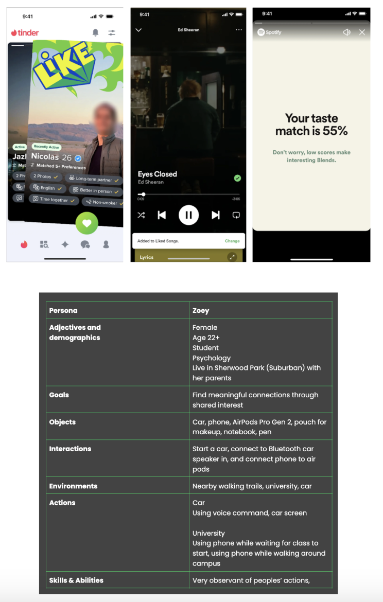 The persona that we created reflected the demographic of who might use the feature. More specifically, our target audience are music lovers who yearn for something more out of the app; something that will allow them to connect and share their music taste with others.
